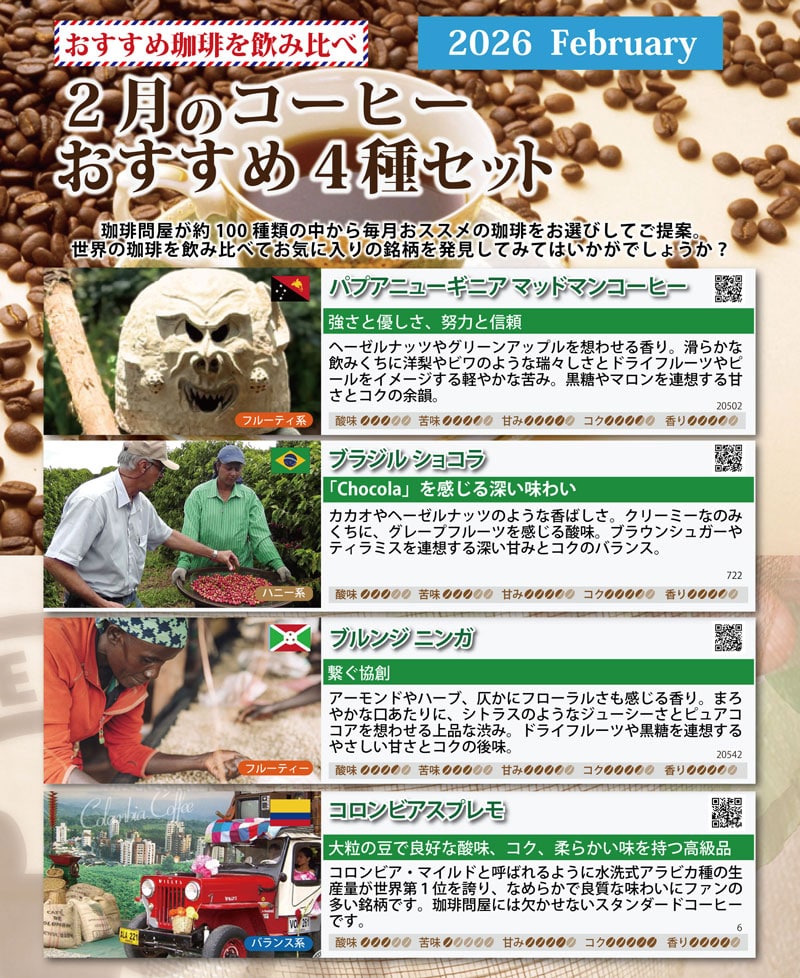 今月だけのおすすめコーヒー4銘柄を