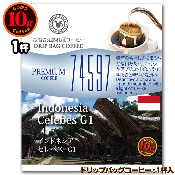 10gドリップバッグ 74597 インドネシア セレベス G1 1杯 お湯さえあればコーヒー 特別な日に飲みたいコーヒー