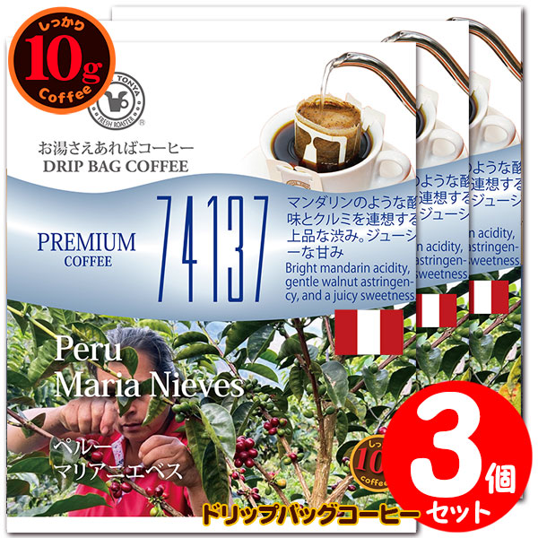 10gドリップバッグ 74137 ペルー マリア ニエベス 3杯 お湯さえあればコーヒー 特別な日に飲みたいコーヒー 【10gx3袋】