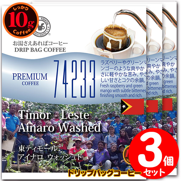 10gドリップバッグ 74233 東ティモール アイナロ ウォッシュド 3杯 お湯さえあればコーヒー 特別な日に飲みたいコーヒー 【10gx3袋】