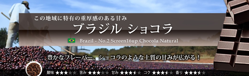 そして名づけられたネーミングが「ブラジル・ショコラ」。組合に属する20農園からこの地域特有の風味をもつコーヒーを選定して作られた、安定した品質でお届けできる逸品です。 4世代以上、約120年間もの歴史を歩んでコーヒー栽培をしてきたチョコレートのような重厚感のある甘みと味わいを、お好みの煎り加減でぜひご堪能ください。