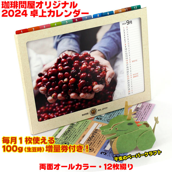 珈琲問屋オリジナル 2024年 卓上カレンダー(約15cm×19.2cm)毎月1枚使えるコーヒー豆増量券付き