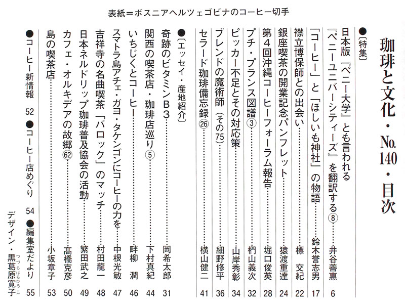 珈琲店経営情報誌「珈琲と文化」No.140 冬号