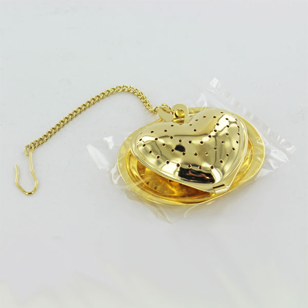 ハートの形をしたかわいらしいティーストレーナー。こちらは、ゴールドのタイプとなります。